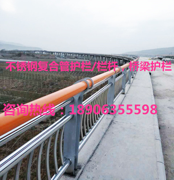 不銹鋼復合管欄桿,它不僅具有不銹鋼管的豪華美觀和現代氣息,又具有普通碳鋼管的堅韌性。是價昂不銹鋼管的替代品,它與鍍鋅噴塑鋼板立柱配合,做成城市、道橋等的安全欄桿。不僅牢固、大方,且可造型各異,是城市景觀護欄的首選。
