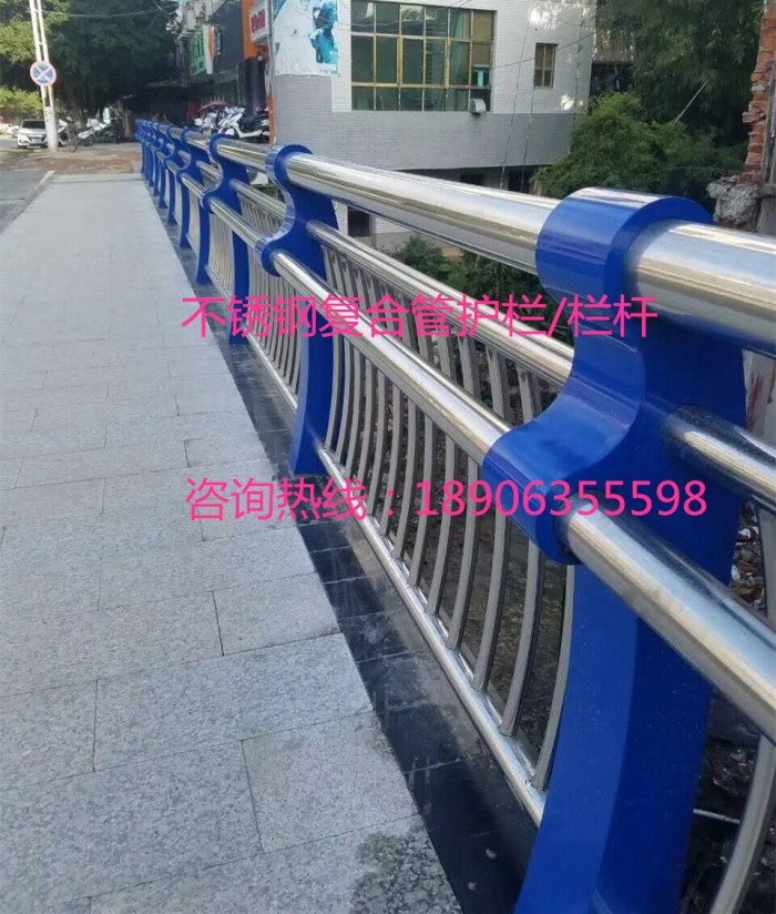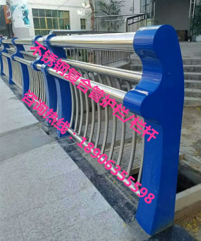 不銹鋼復合管欄桿,它不僅具有不銹鋼管的豪華美觀和現代氣息,又具有普通碳鋼管的堅韌性。是價昂不銹鋼管的替代品,它與鍍鋅噴塑鋼板立柱配合,做成城市、道橋等的安全欄桿。不僅牢固、大方,且可造型各異,是城市景觀護欄的首選。